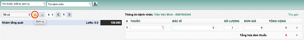 Thao tác tạo hóa đơn dịch vụ tương tự với tạo hóa đơn thuốc